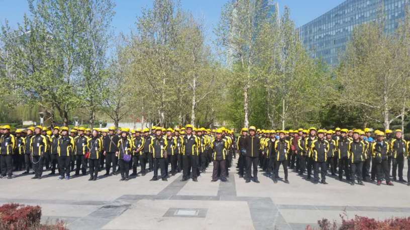 Every morning before 10:00am, a swarm of electric bikes descends on an open square in Beijing’s Zhongguancun District. The riders, mostly men, park their bikes and mill about, forming a sea of over a hundred people in matching yellow and black jackets. One-by-one others buzz in to join them. With their brightly colored uniforms they are unmistakably bee-like, the rearview mirrors on their bikes pointing out like antennas. When 10:00am hits, they stand in rows, arms-length apart, and chant in unison. They pledge to follow the stipulations issued by Meituan Company, Zhongguancun District. Then they turn and offer each other a few bows before riding off to begin their day.